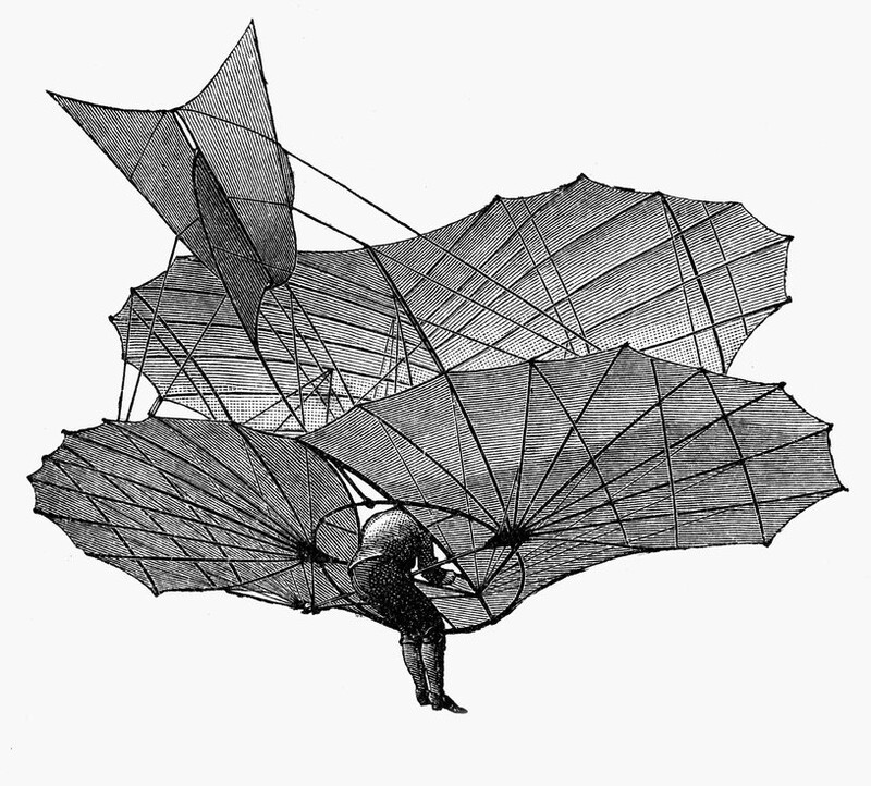 Die griechische Sage von Daidalos und Ikaros endet tragisch: Kunstfertig kontruiert Daidalos für sich und seinen Sohn Ikaros zwei Flügelpaare aus Vogelfedern und Wachs. Im Flug missachtet Ikaros die Warnungen seines Vaters und kommt der Sonne zu nahe. Das Wachs schmilzt und die Flügel fallen auseinander. Ikaros stürzt ins Meer.